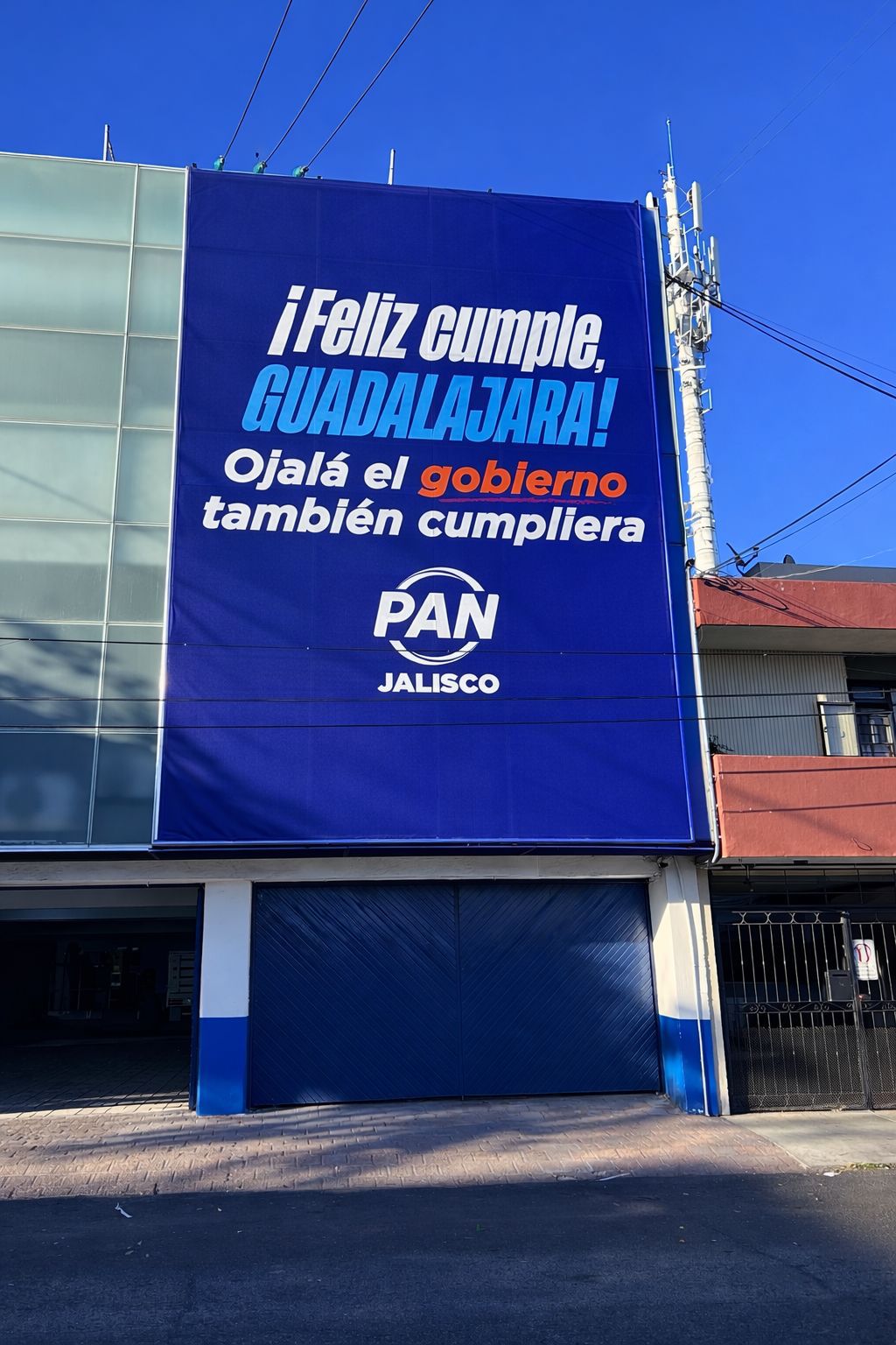 De acuerdo con la dirigencia estatal, la estrategia contemplaba la instalación de espectaculares con un mensaje por el aniversario de la ciudad acompañado de señalamientos sobre la falta de resultados del gobierno local. El mensaje que, aseguran, fue impedido era: “Feliz cumple Guadalajara, ojalá el gobierno también te cumpliera”. Sin embargo, señalaron que empresas del ramo reportaron presiones para evitar la colocación de la campaña.